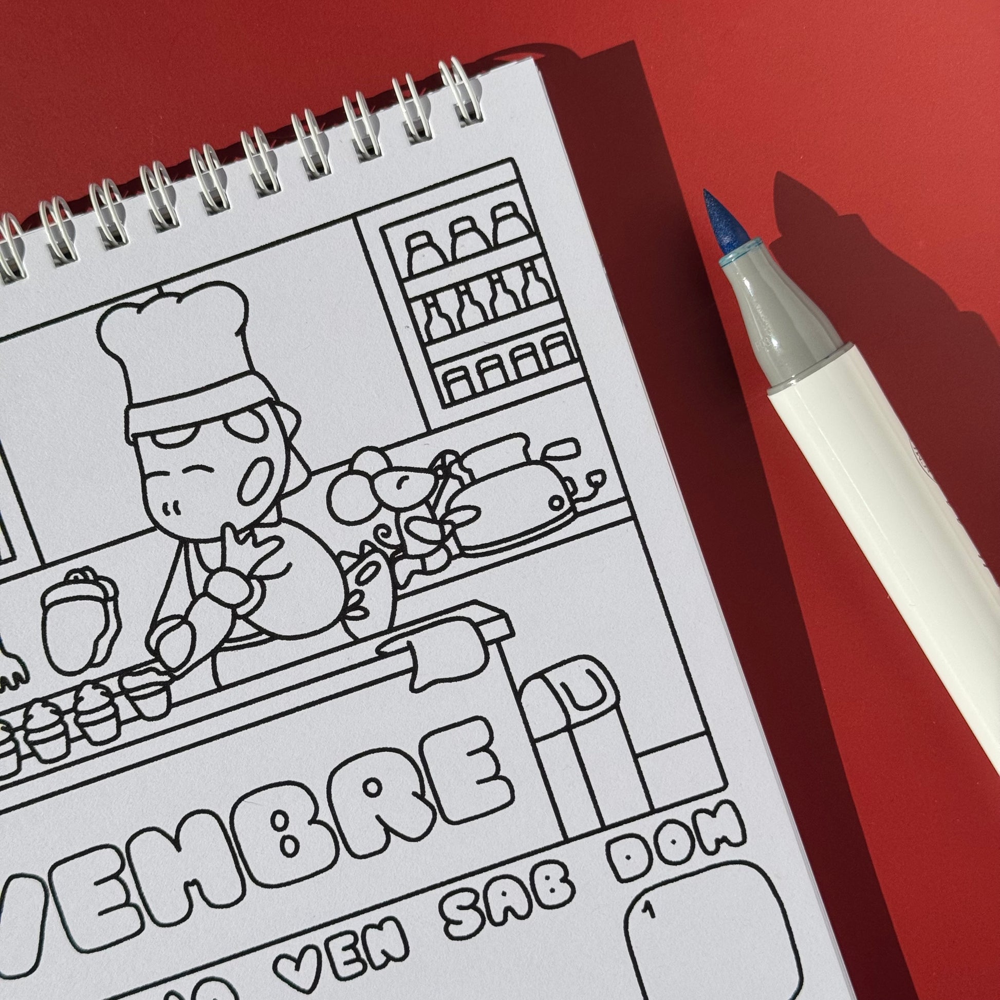 Ogni inizio mese coloreremo insieme in live la pagina corrispondente del Calendino, le live verranno registrate e caricate successivamente sull'account YouTube di Bebilù per poterle riguardare, prendere ispirazione o anche solo rilassarsi.